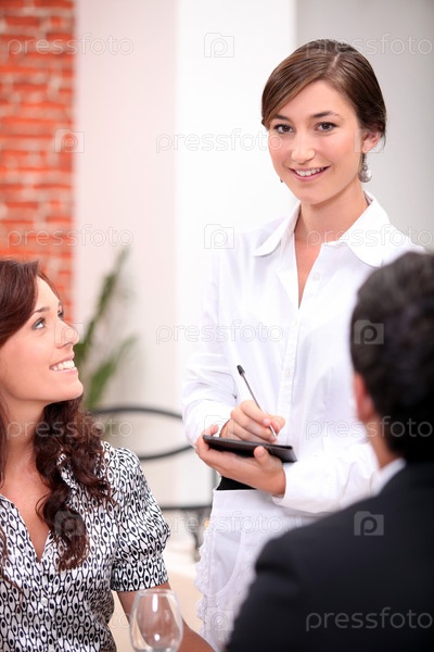 Официантка с клиентами