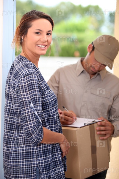 Курьет отдает посылку