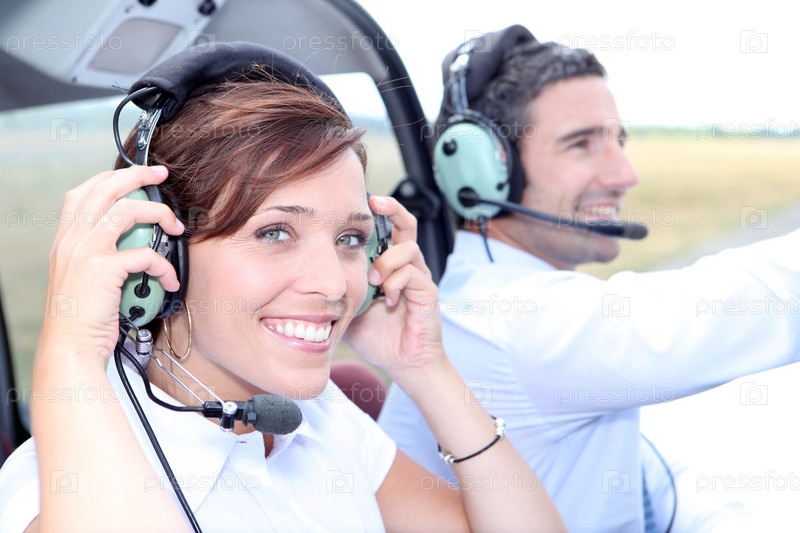 Мужчина и женщина в кабине легкого самолета