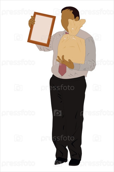 Бизнесмен с мешком денег и грамотой на белом фоне