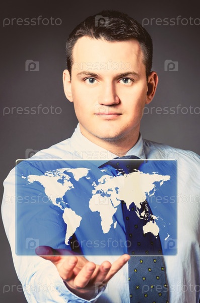 Деловой мужчина с иконкой карты мира