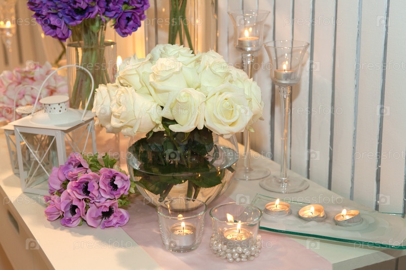 Стол, украшенный свечами и розами