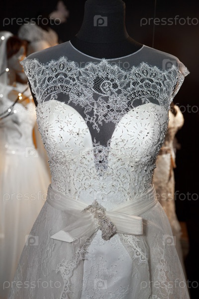 Свадебное платье из кружева на манекене