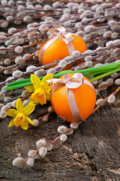 Красочные пасхальные яйца на столе