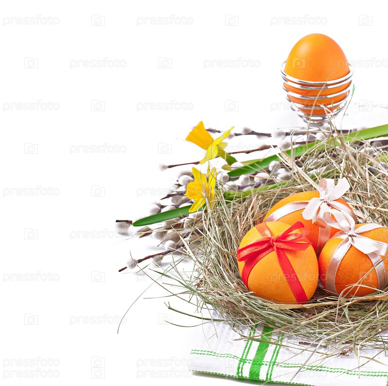 Красочные пасхальные яйца на белом фоне