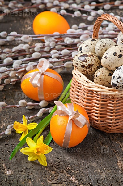 Пасхальные яйца на деревянном фоне