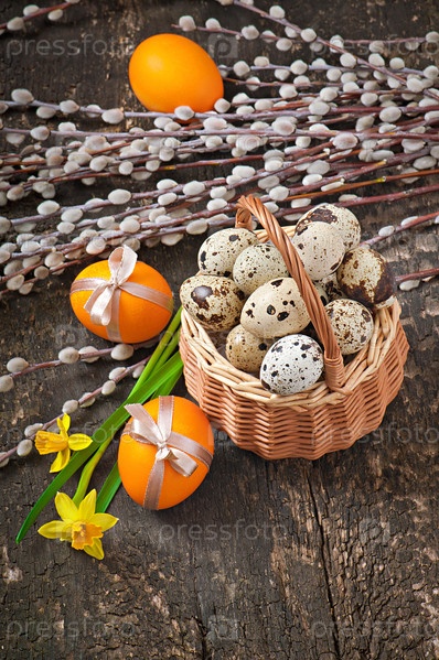 Пасхальные яйца на деревянном фоне