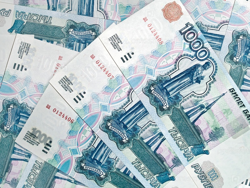Фон из тысячерублевых купюр с последовательными номерами