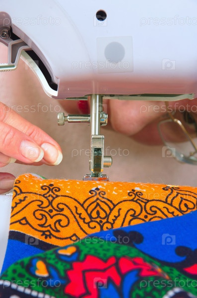 Женщина шьет на швейной машине