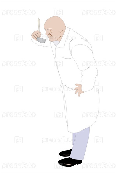 Повар пробует суп из половника