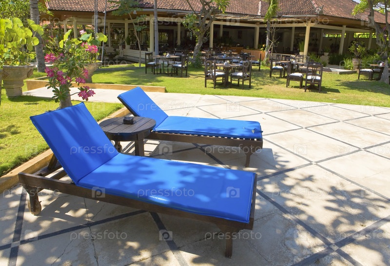 Пустые шезлонги перед гостиничным рестораном, Индонезия