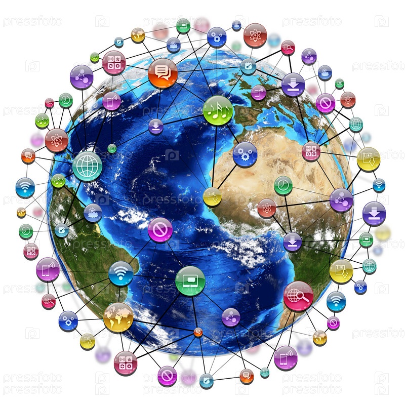 Иконки приложений вокруг Земли
