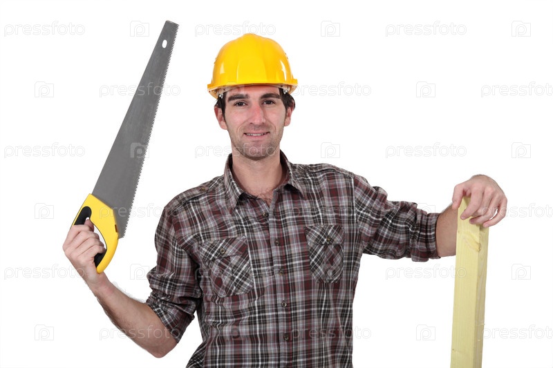 Рабочий с ручной пилой