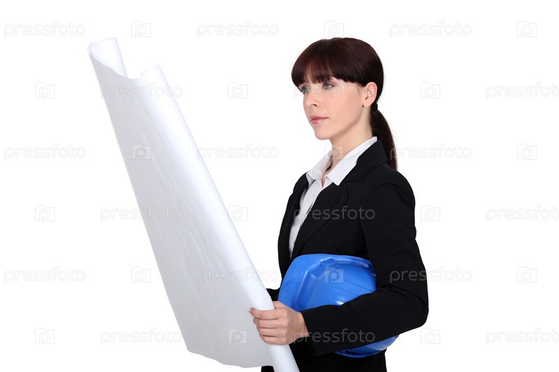 Женщина архитектор изучает план