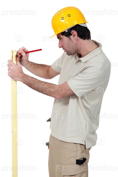 Человек ставит метки на древесине