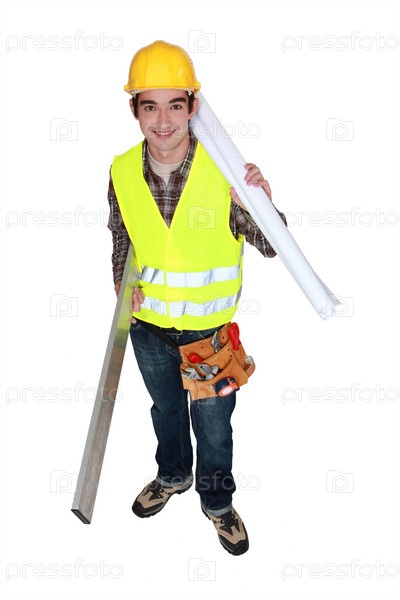 Молодой строитель с планами
