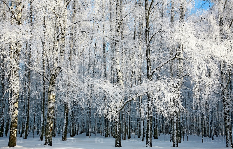Солнечная березовая роща зимой