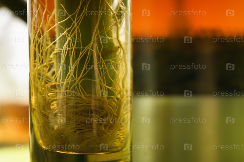 Корни растения в стеклянной вазе