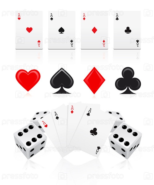 Векторное изображение игральных карт с кубиками на белом фоне