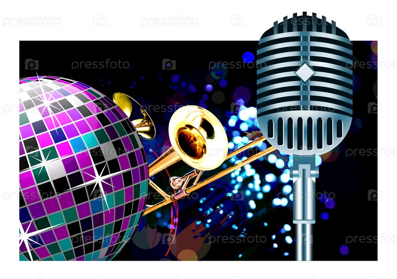 Векторный дискотечный шар с микрофоном и трубой