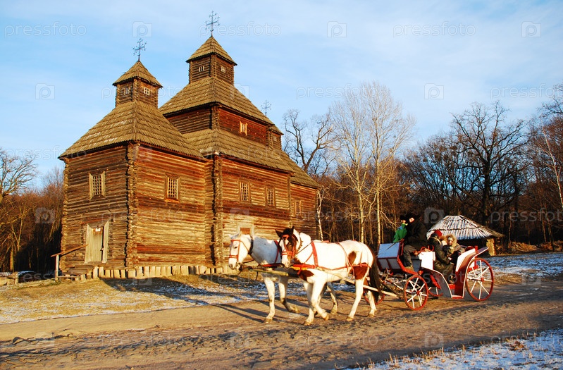 Телега запряжённая лошадью