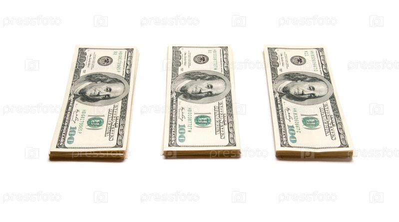 Три стопки с деньгами на белом фоне