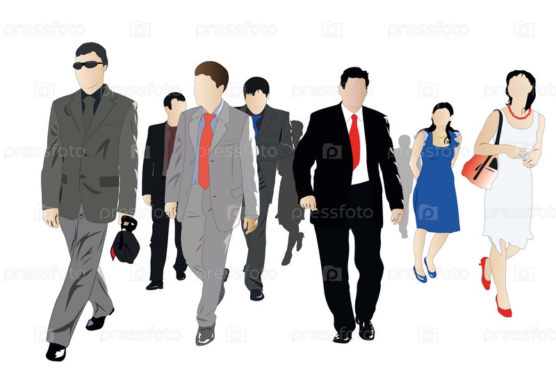 Иллюстрация идущих мужчин и женщин на белом фоне
