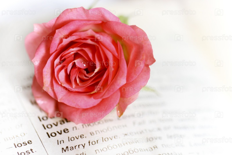 Роза, лежащая на открытой книге