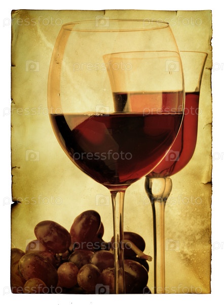 Два бокала вина с виноградом