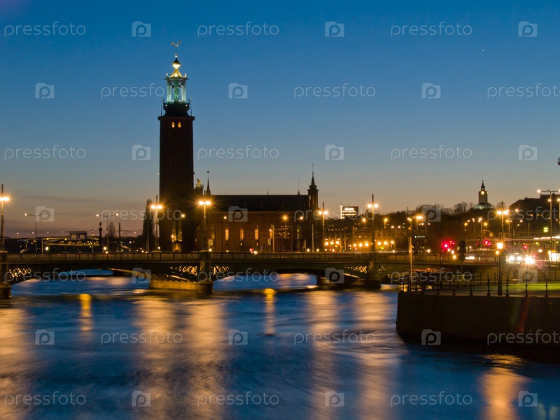 Ратуша, ночной пейзаж, Стокгольм, Швеция