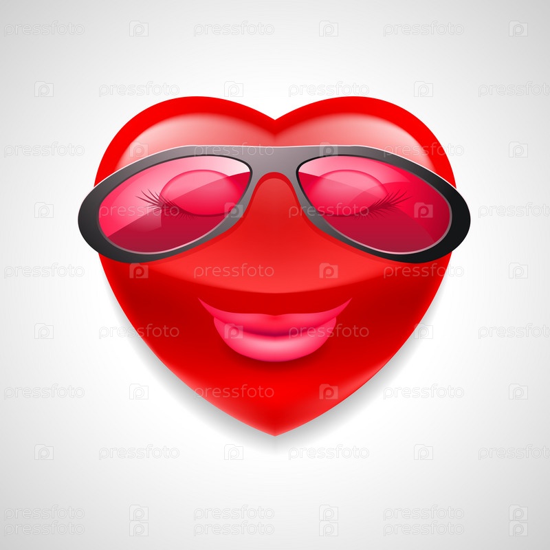Сердце с закрытыми глазами в очках на светло-сером фоне
