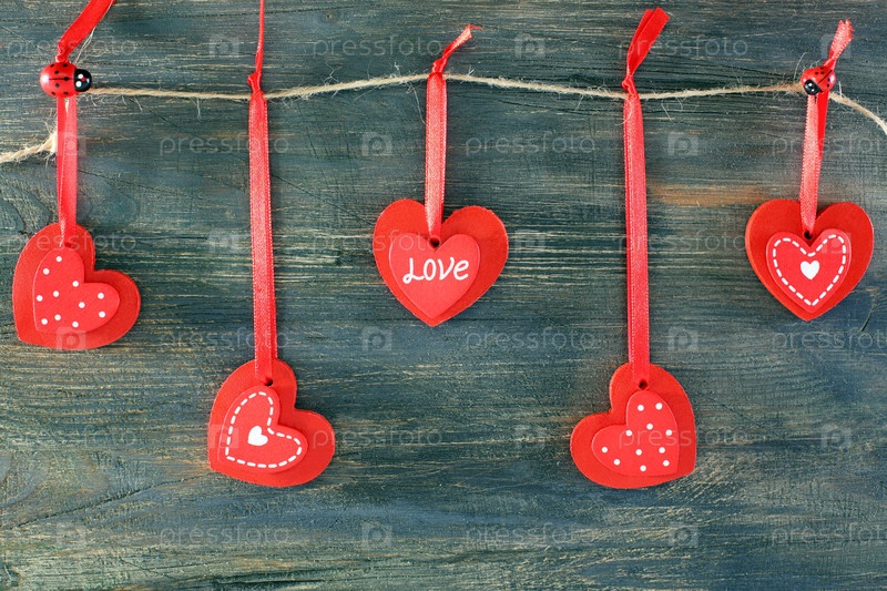 Красные сердечки на деревянной стене