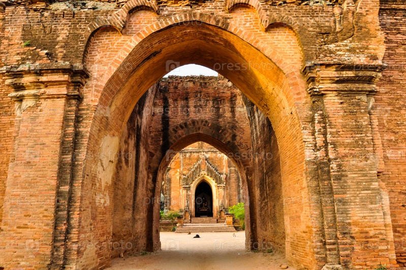 Древний храм после захода солнцав Багане, Мьянма, Бирма