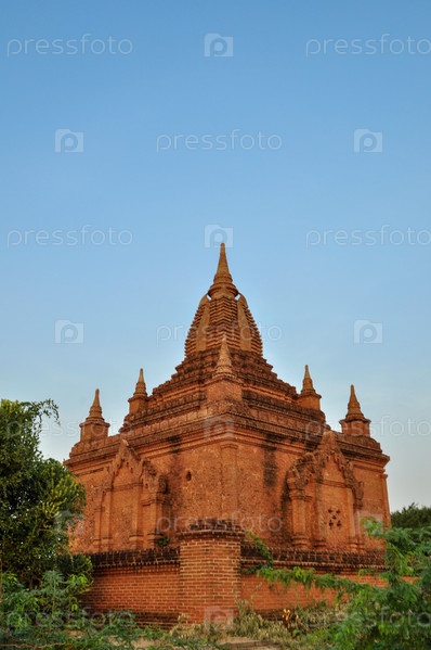 Древний храм после захода солнцав Багане, Мьянма, Бирма