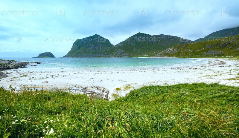 Летний пляж Хоукленд, Лофотенские острова, Норвегия