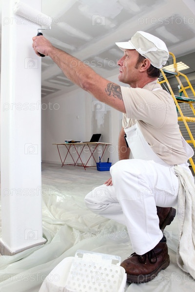 Маляр красит валиком