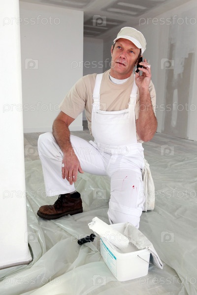 Маляр делает телефонный звонок