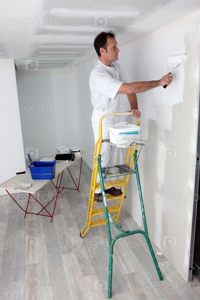 Маляр красит помещение