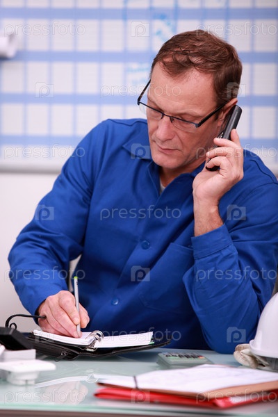 Рабочий говорит по телефону