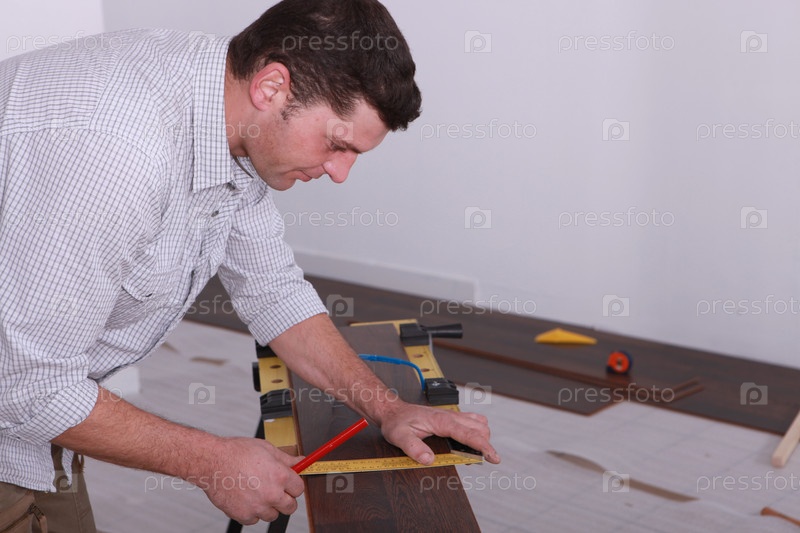 Мужчина укладывает паркет