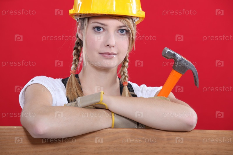 Женщина держит молоток