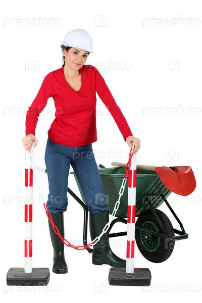 Рабочий с тачкой и лопатой