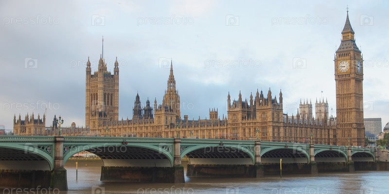 Панорамный вид на Темзу, здание парламента, Биг Бен, Вестминстерский мост