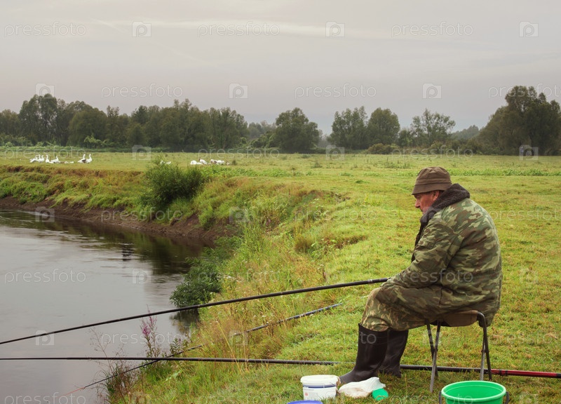 Рыбак на берегу реки