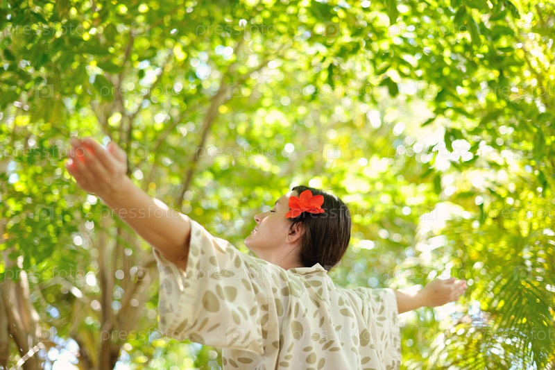 Женщина отдыхает на тропическом курорте