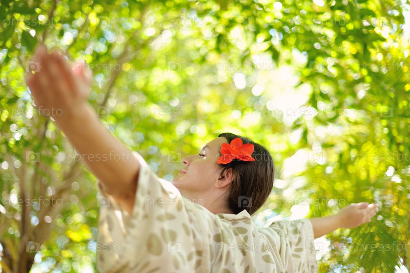 Женщина отдыхает на тропическом курорте