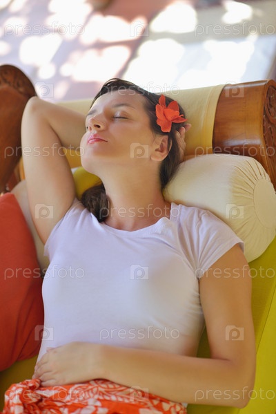 Женщина отдыхает на тропическом курорте