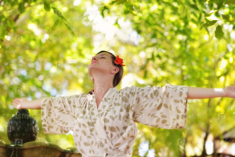 Женщина отдыхает на тропическом курорте