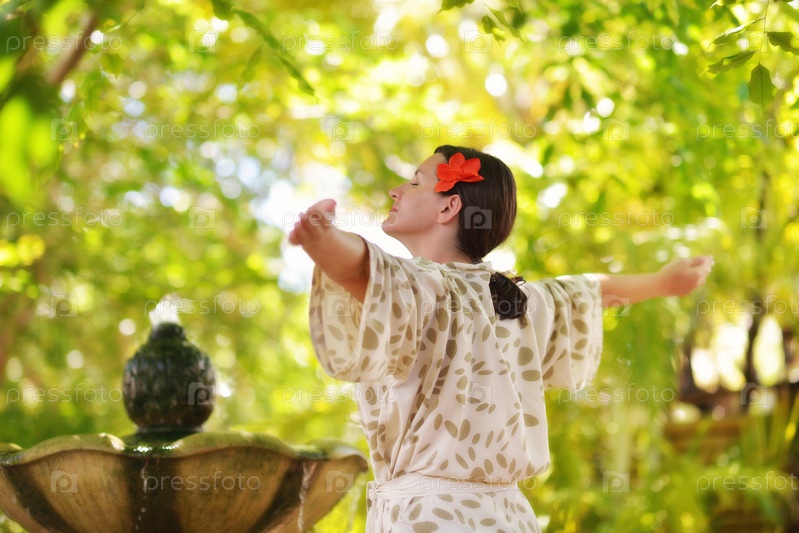 Женщина отдыхает на тропическом курорте