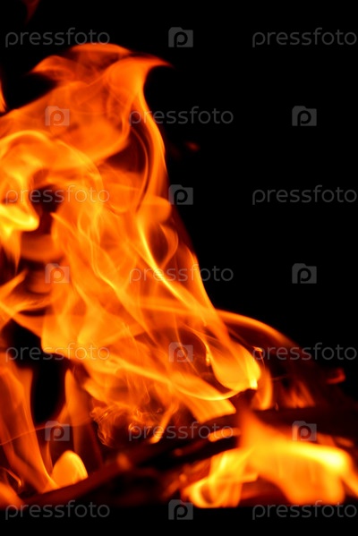 Пламя костра на черном фоне
